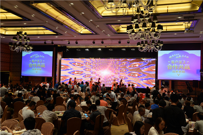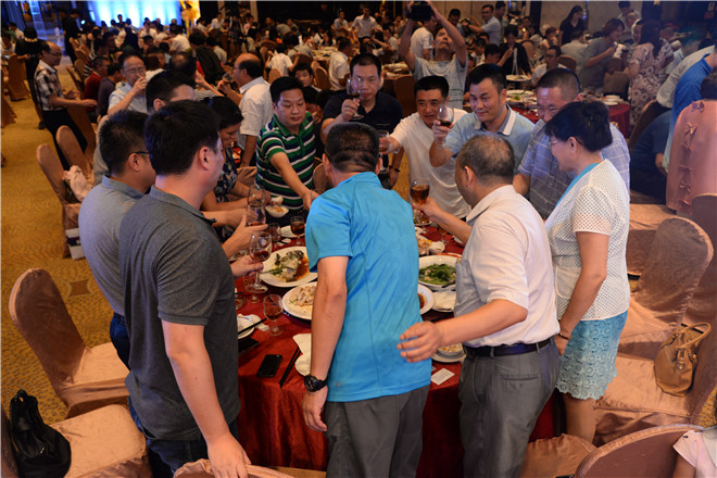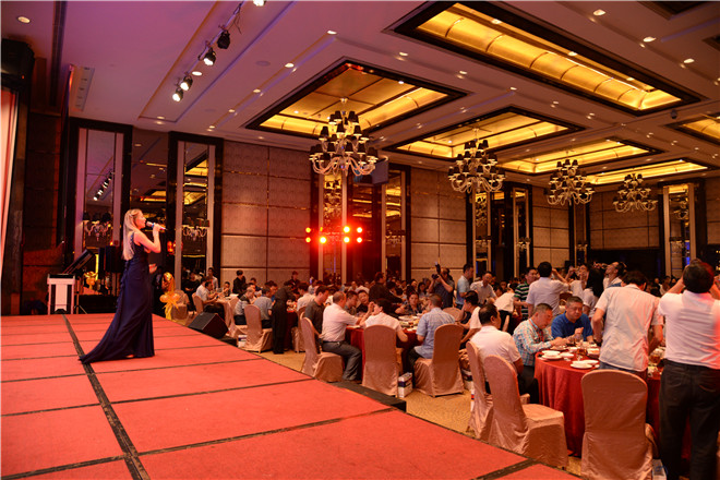 晚宴現(xiàn)場,公司全新拍攝的企業(yè)形象片正式對外展示,以緊跟時(shí)代腳步與公司發(fā)展軌跡的內(nèi)容,向眾客商、嘉賓及媒體呈現(xiàn)了一個(gè)突飛猛進(jìn)的金馬形象。在對2016年公司研發(fā)的新產(chǎn)品集錦進(jìn)行回顧時(shí),眾人更是生動(dòng)形象地看到了一個(gè)實(shí)力金馬,正如劉喜旺總經(jīng)理的致辭所言“中山金馬追求又好又快的發(fā)展,追求厚積薄發(fā)式的飛躍產(chǎn)品厚積薄發(fā),量的積累已經(jīng)達(dá)到了質(zhì)的突變”。宴會(huì)上,滿堂燈光璀璨奪目,鮮花氣球五彩繽紛,來自各地的客商、嘉賓熱烈交談,酒斟交錯(cuò)間歡聲笑語不斷,席間還伴以助興歌舞與魔術(shù)節(jié)目、幸運(yùn)抽獎(jiǎng)游戲、客戶互動(dòng)采訪環(huán)節(jié)等,一種愉悅、和樂的氛圍油然而生。近三個(gè)小時(shí)的歡聚后,晚宴在一場《越來越好》歌伴舞節(jié)目的祝福和憧憬中慢慢降下了帷幕。