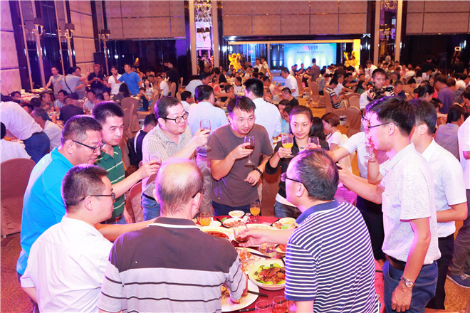 金色八月,熱情似火,有朋自遠(yuǎn)方來,逢盛事喜相聚。為了對即將召開的第十屆中國(中山)國際游戲游藝博覽交易會(huì)表示熱烈的祝賀,以及對多年來一直關(guān)心、支持金馬健康發(fā)展的合作伙伴和嘉賓表示誠摯的歡迎和衷心的感謝,8月10日晚,乘著行業(yè)盛會(huì)的東風(fēng),公司在中山喜來登酒店舉行了盛大的客戶招待晚宴。國內(nèi)外新來客商、嘉賓、媒體記者200余人應(yīng)邀出席,與公司管理層及員工代表們共同感受了一場精彩紛呈的盛宴,度過了一個(gè)充滿歡樂與活力的難忘之夜。