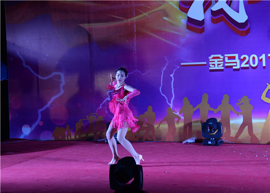 晚會(huì)在當(dāng)日18:30準(zhǔn)時(shí)開始,近300名金馬人有序齊聚臺(tái)下,一卸工作的疲累,放松精神,歡樂暢談,縱享小食。一開始是前期迎春文體系列活動(dòng)的頒獎(jiǎng)表彰環(huán)節(jié),籃球、羽毛球、桌球、乒乓球、越野、攀巖等各項(xiàng)活動(dòng)獲獎(jiǎng)代表分別從頒獎(jiǎng)?lì)I(lǐng)導(dǎo)手中接過獎(jiǎng)狀和獎(jiǎng)金,喜悅之情溢于言表。隨后,文藝匯演正式開始,瞬時(shí)音樂響起,燈光閃爍,全場目光齊刷刷地射向舞臺(tái)。喜慶洋洋的“恭喜發(fā)財(cái)”率先登臺(tái),來自機(jī)械車間的6名員工將濃濃的年味散播至現(xiàn)場每一個(gè)角落;開料車間創(chuàng)意策劃編排的“大王叫我來巡山”舞蹈完美融合生肖吉祥物寓意,打造出一個(gè)“眾猴拱雞”的趣味舞臺(tái);來自玻璃鋼車間王曉玲的一首“映山紅”以其游刃有余的高聲調(diào)震撼全場;精益部的“ 鞋釘”小品雖僅2人登臺(tái),卻憑借生動(dòng)形象的人物塑造與演出征服了臺(tái)下評(píng)委與觀眾... ...匯演中場雖時(shí)有毛毛細(xì)雨拂起,但像雨像霧又像風(fēng)的感覺為演出現(xiàn)場平添了一絲韻味,增添了一份浪漫的氣息,整場表演更是可謂精彩紛呈、引人入勝。