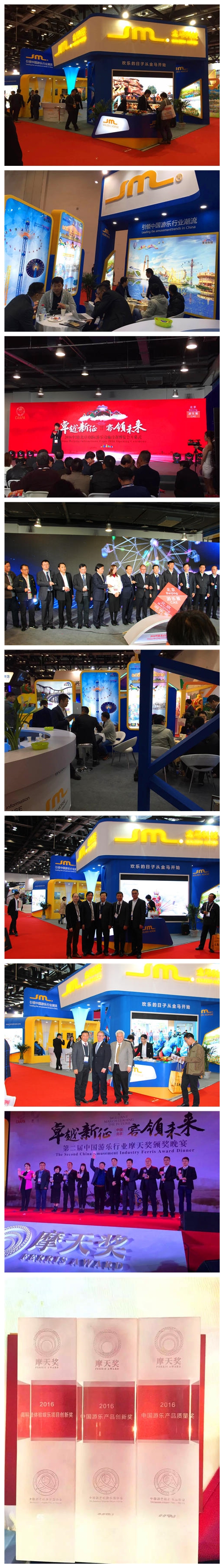 在本屆展會(huì)上,由中國(guó)游藝機(jī)游樂園協(xié)會(huì)及CCTV“品質(zhì)”欄目聯(lián)合頒發(fā)的游樂“摩天獎(jiǎng)”進(jìn)行了揭曉,金馬產(chǎn)品引領(lǐng)中國(guó)游樂行業(yè)潮流,通過(guò)不斷創(chuàng)新,獲得了國(guó)內(nèi)外市場(chǎng)的高度認(rèn)可,在本次頒獎(jiǎng)禮上,公司榮獲“高科技體驗(yàn)娛樂項(xiàng)目創(chuàng)新獎(jiǎng)”、“中國(guó)游樂產(chǎn)品創(chuàng)新獎(jiǎng)”、“中國(guó)游樂產(chǎn)品質(zhì)量獎(jiǎng)”等三項(xiàng)大獎(jiǎng)!