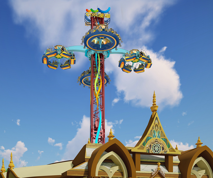 采用雙座艙形式,即集成旋轉(zhuǎn)座艙與擺動(dòng)座艙,滑行擺動(dòng)角度多樣化,為游客提供新奇、刺激的游玩體驗(yàn)。另外,飛旋塔最高限制乘坐人數(shù)較同類飛行塔產(chǎn)品更多(承載56人),且其采用的雙油缸安全模式具備安全冗余,由此達(dá)到運(yùn)營效率與安全系數(shù)的雙項(xiàng)提升。