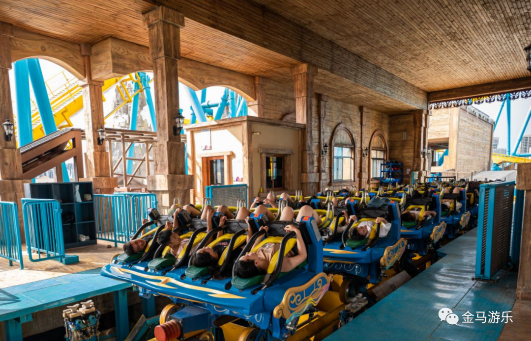 與其他飛行過山車不同,金馬飛行過山車在站臺(tái)區(qū)車體位于軌道上方,配合水平面上下客平臺(tái),改善了乘客臥姿上下的不適與不便,有效提升舒適度與運(yùn)營(yíng)效率,理論客流量達(dá)1440PPH。