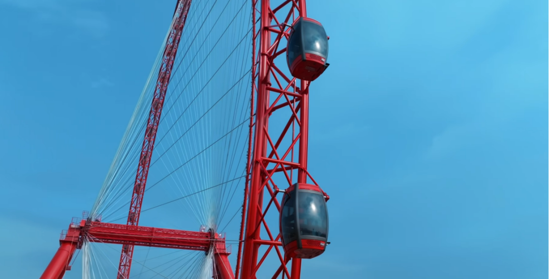 值得關(guān)注的是,金馬游樂(lè)在該項(xiàng)目上應(yīng)用了兩項(xiàng)創(chuàng)新技術(shù)方案,確保摩天輪的舒適及安全。吊廂伺服調(diào)平技術(shù),令每個(gè)吊廂在運(yùn)行中始終處于水平狀態(tài),大幅提升吊掛式轎廂受到風(fēng)載荷時(shí)的平穩(wěn)性;雙驅(qū)動(dòng)系統(tǒng)獨(dú)立運(yùn)作方案,增強(qiáng)安全冗余,緊急狀況下無(wú)高空救援風(fēng)險(xiǎn)。