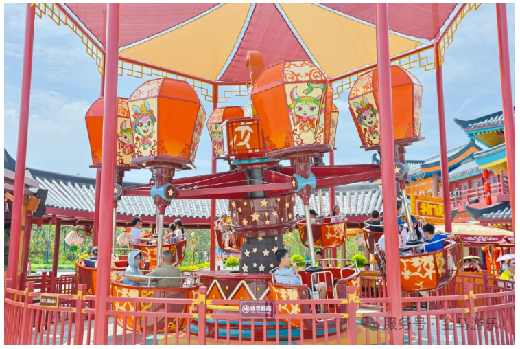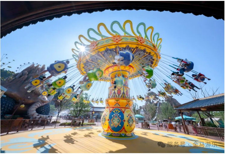 在資陽(yáng)方特國(guó)色春秋中,摩天輪、自控飛機(jī)、跳傘塔、太空梭、海盜船等十余款游樂(lè)設(shè)備,均由金馬游樂(lè)進(jìn)行主題化外觀定制。憑借規(guī)模領(lǐng)先的專業(yè)技術(shù)團(tuán)隊(duì)與成熟的定制服務(wù)體系,金馬從數(shù)字化設(shè)計(jì)、建模,到國(guó)際水平的工藝制作,全程把控,最終實(shí)現(xiàn)藝術(shù)級(jí)主題呈現(xiàn),強(qiáng)化設(shè)備與園區(qū)主題環(huán)境的深度融合,營(yíng)造出高品質(zhì)的沉浸式游樂(lè)氛圍。