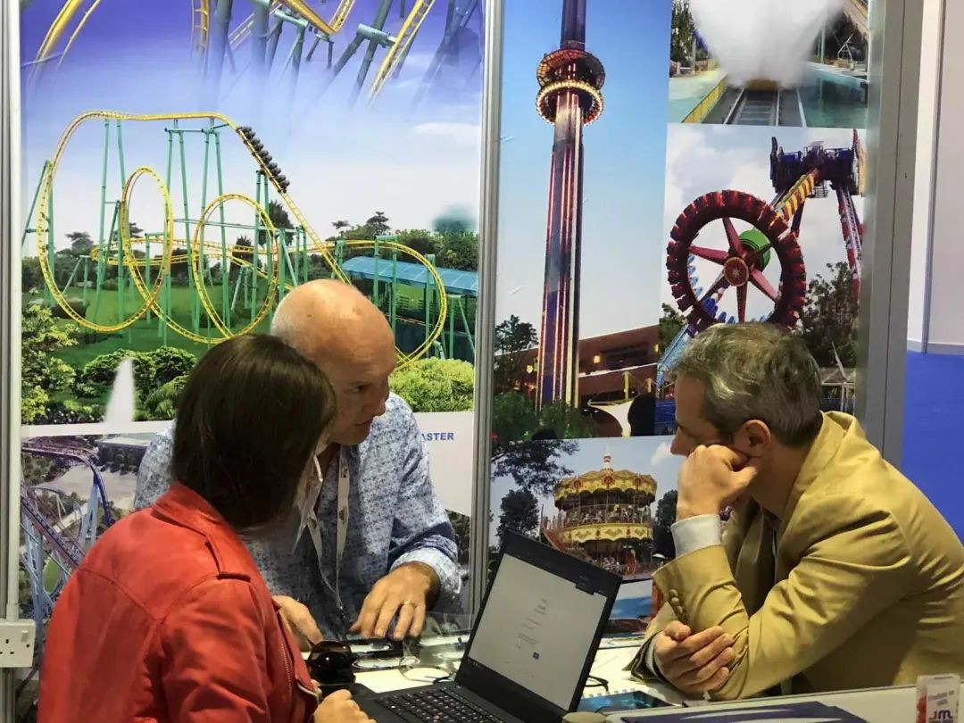 此次迪拜展是新冠疫情以來,金馬游樂首次參與的國(guó)際展會(huì)。作為國(guó)際頂級(jí)連鎖主題樂園的游樂設(shè)備供應(yīng)商,金馬游樂以“中國(guó)制造”的海外代言人形象亮相國(guó)際展會(huì)。此次展會(huì),由金馬游樂歐洲團(tuán)隊(duì)攜LSM電磁彈射過山車、百米摩天輪、影視飛行塔等多個(gè)系列創(chuàng)新產(chǎn)品亮相,展位吸引了中東、北非地區(qū)多國(guó)客商朋友前來咨詢交流、洽談合作,現(xiàn)場(chǎng)氣氛熱烈。