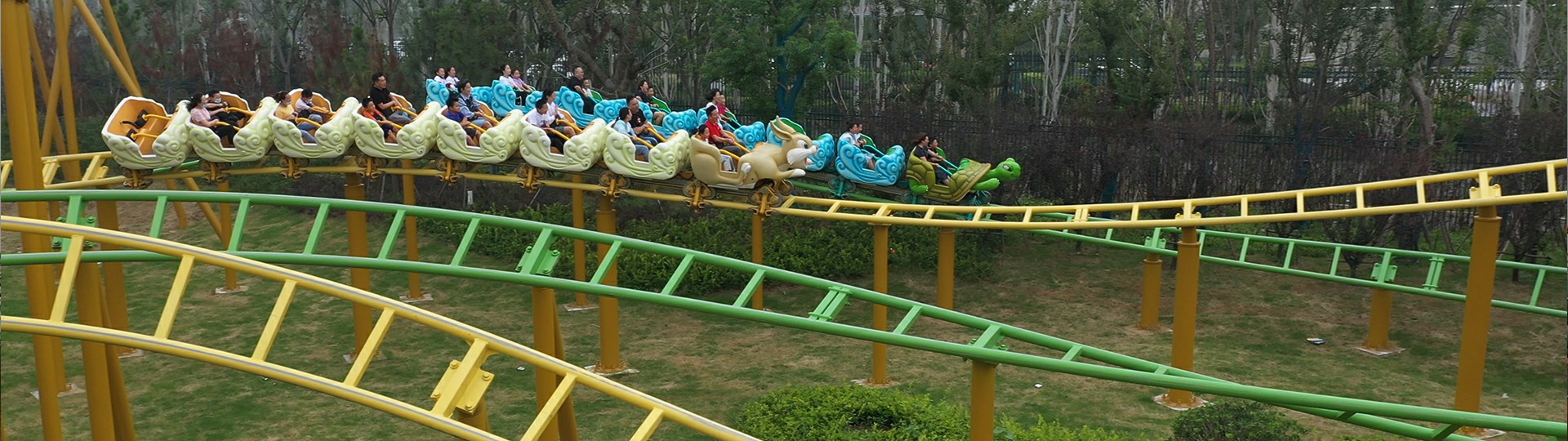 雙軌家庭過??,共有A、B兩條軌道交互布局,每條軌道上各運??列?,兩列?可同時出發(fā),雙?并?如競速賽跑,故?名“?兔賽跑”。競賽元素為乘客提供更加有趣的乘坐體驗,適合親?家庭群體游玩。