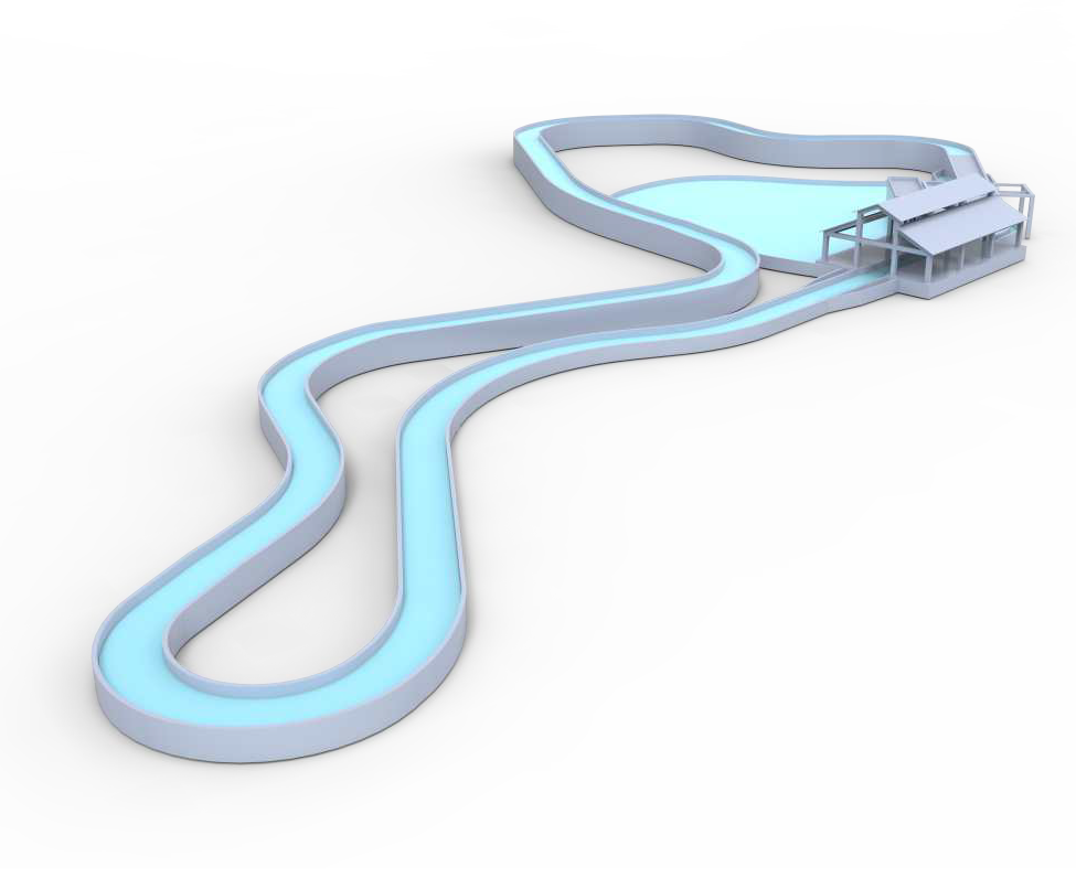 峽谷漂流,筏體經(jīng)提升系統(tǒng)由站臺提升至水道的高位后,由主泵推動的流水驅(qū)動前進(jìn)。船速由水道形狀決定,通過水底阻水堰的定位設(shè)置來制造洶涌的水波,沿途可對水道兩旁進(jìn)行景觀包裝來制造融入自然的環(huán)境,讓游玩體驗(yàn)更親近大自然。
