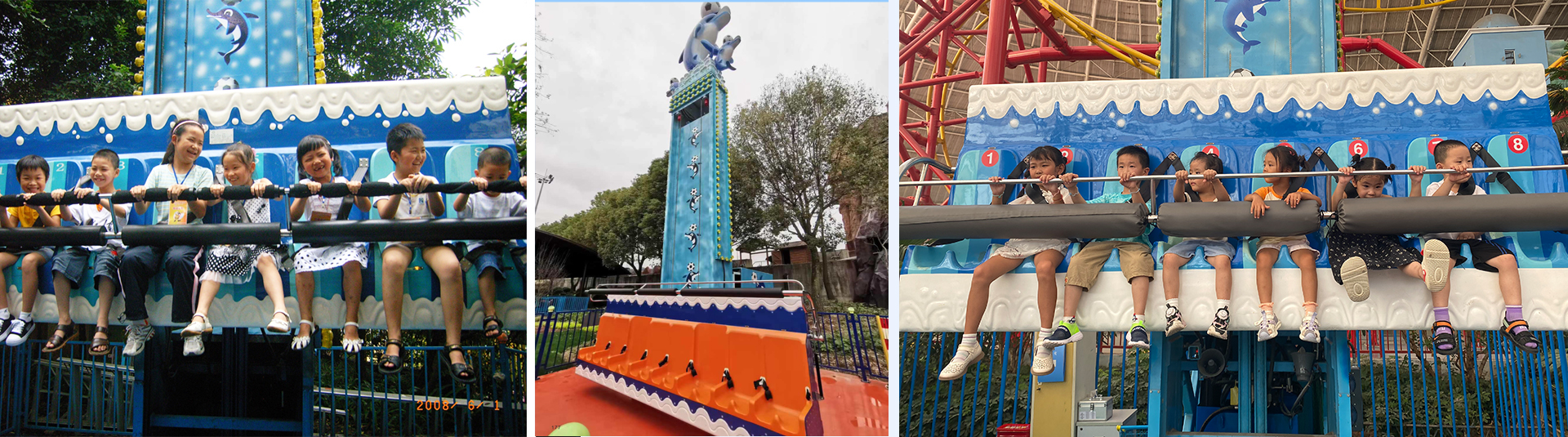 海豚跳以海豚在海洋中跳躍為主題,以海洋浪花作為外形的座艙沿著?柱軌道作上升、下降和連貫的跳躍運(yùn)動,讓游客體會歡快跳躍的感覺。