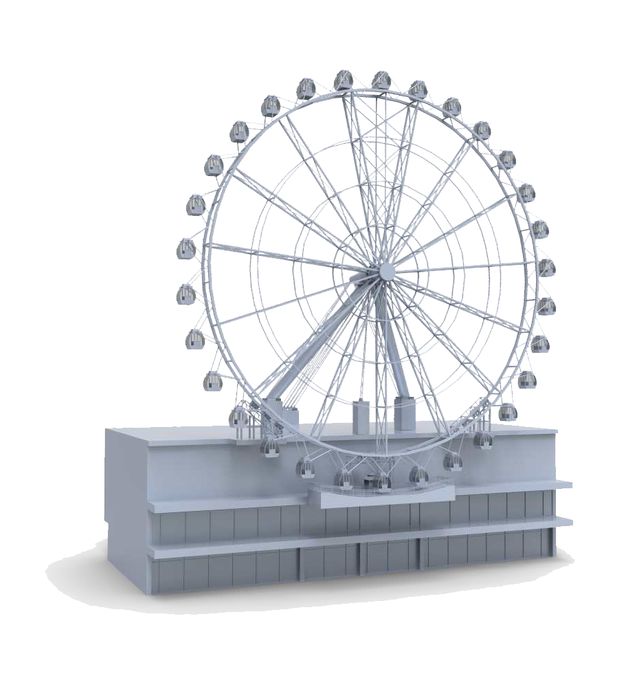 GLC-52A觀覽?,懸挑式?柱設(shè)計,如倫敦眼般彰顯“飄逸”個性。其懸挑式?柱設(shè)計尤為適合樓頂觀光,30個配備?全的吊廂使快速運(yùn)營成為可能。