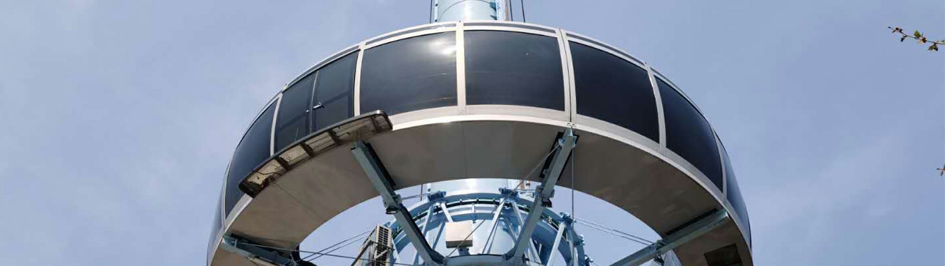觀景塔可容納60人,運營高效。塔體配備配重裝置,抵消艙體大部分重量,降低提升所需功率,從而達到降低運營成本的效果。塔底配置緩沖裝置,為乘客提供輕緩的乘坐體驗,讓乘客在舒適的環(huán)境中飽覽周邊美景