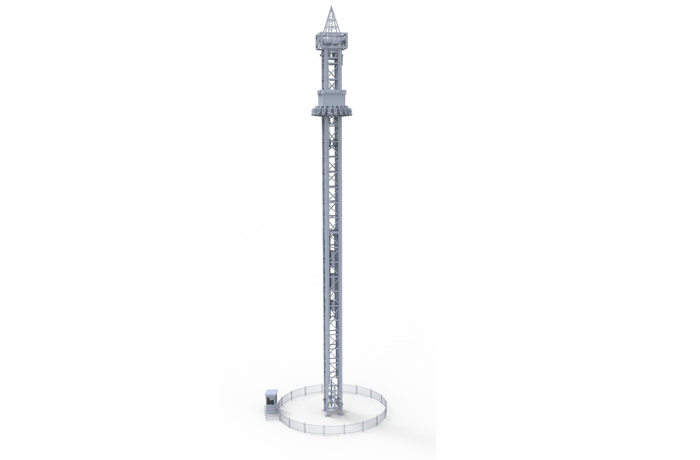 太空梭座艙沿著豎直的立柱軌道作上升、下降和連貫的跳躍運動,使乘客在超重與失重的過程中體驗到加速度升降樂趣。
