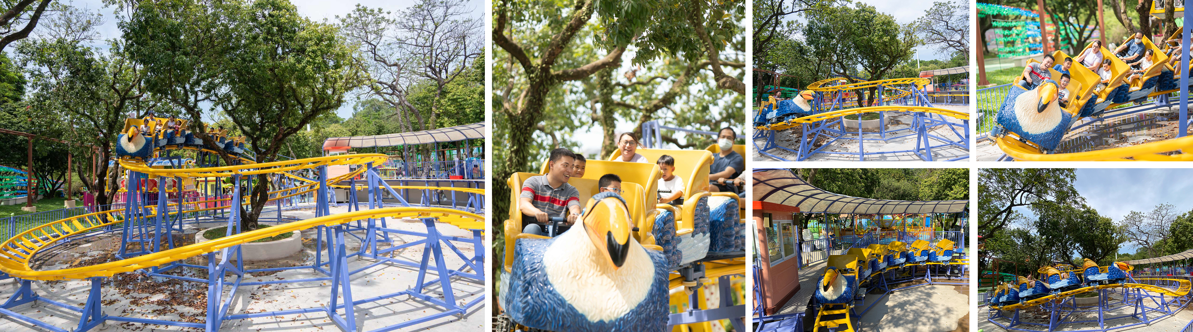 大嘴鳥過山車采用活潑獨(dú)特的巨鳥造型車體,集娛樂性和趣味性于一體,對(duì)兒童極具吸引力。設(shè)備占地面積小,且路軌站臺(tái)均采用組合式結(jié)構(gòu),無(wú)需制作基礎(chǔ),可實(shí)現(xiàn)快速拆卸。