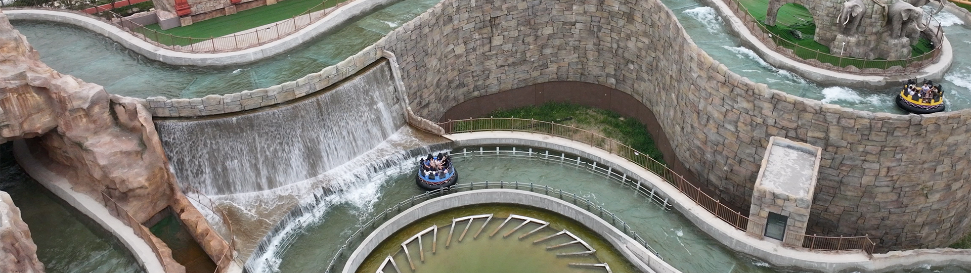 漂流采用旋轉(zhuǎn)站臺(tái),快速平穩(wěn)上下客。蜿蜒河道結(jié)合洞穴、瀑布等實(shí)景景觀,游客乘筏艇通過(guò)旋轉(zhuǎn)站臺(tái)進(jìn)入蜿蜒曲折的水道,在湍急的水道里一路跌宕起伏和浪花搏擊,體驗(yàn)水簾穿梭、高速俯沖、急流漩渦、山狹水轉(zhuǎn)的親水樂(lè)趣!