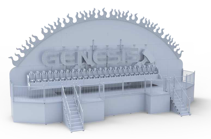 排山倒海在液壓馬達(dá)的驅(qū)動(dòng)下,兩個(gè)擺臂帶動(dòng)座艙轉(zhuǎn)動(dòng),配合座艙的整體平動(dòng),實(shí)現(xiàn)圓形的座艙運(yùn)動(dòng)軌跡。乘客并排座于座艙中充分感受順時(shí)、逆時(shí)交替變速旋轉(zhuǎn),勢(shì)如上山下山的時(shí)空交錯(cuò)感。