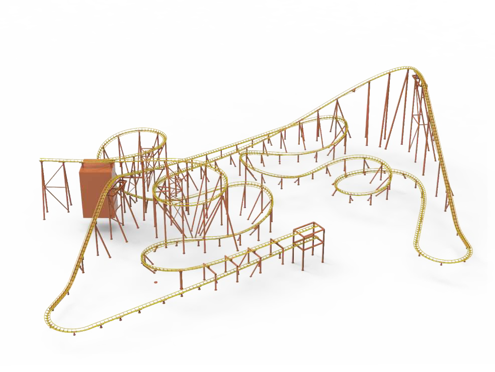 速降背沖過??是采?2次鏈條提升的礦??,結(jié)合影視技術(shù),運?過程中包含動感平臺、倒溜、“跳樓機”式的下墜軌道,為帶來與眾不同的過??新體驗。