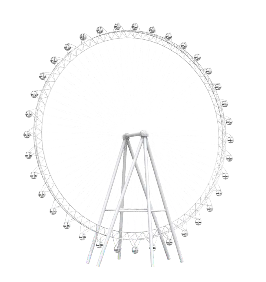 88?觀覽?,塔架由6根?柱構(gòu)成,觀覽?的設(shè)計(jì)打破傳統(tǒng)摩天輪的界限,將拉膜造型與摩天輪相互結(jié)合,融為?體,使摩天輪在感官上更加宏偉壯觀,專為地標(biāo)項(xiàng)?打造。夜幕降臨,摩天輪運(yùn)作時(shí)配以明麗變幻的燈飾與外觀造型相互呼應(yīng),使得摩天輪成為閃耀的地標(biāo)打卡點(diǎn)。