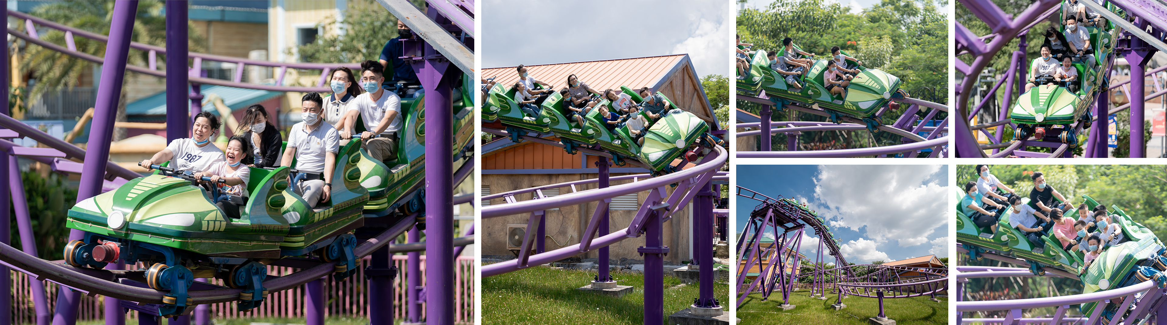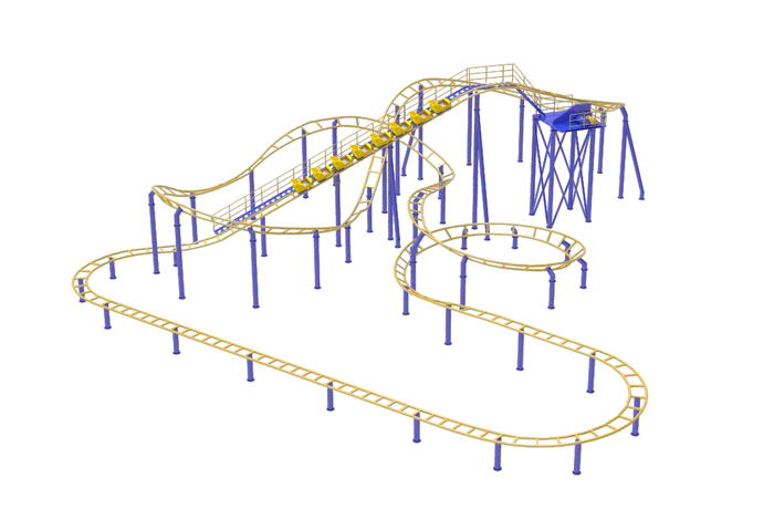 家庭過山車由列車、軌道、立柱、提升系統(tǒng)、推車裝置系統(tǒng)、制動(dòng)系統(tǒng)、氣動(dòng)系統(tǒng)、控制系統(tǒng)等部分組成。兩列車體造型小巧玲瓏,親子氛圍濃厚,是親子主題樂園的必選設(shè)備。