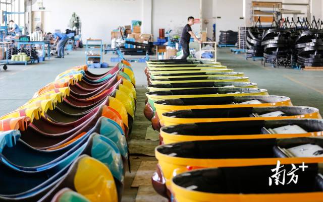 在金馬游樂港口鎮(zhèn)廠區(qū)的生產(chǎn)車間內(nèi),一些制作完成的碰碰車外殼碼放整齊,等待出庫?;厮葸^去30余年,這個小小的游藝車?yán)锍休d了“金馬”的創(chuàng)業(yè)史。