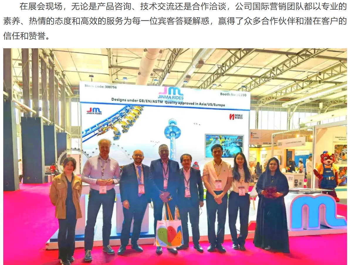 中東市場(chǎng)具有獨(dú)特文化和消費(fèi)習(xí)慣,公司將根據(jù)市場(chǎng)特點(diǎn)進(jìn)一步優(yōu)化產(chǎn)品設(shè)計(jì)和服務(wù)方案,以更加貼合當(dāng)?shù)匦枨蟮挠螛?lè)裝備產(chǎn)品和解決方案力求取得更大突破,持續(xù)深耕中東市場(chǎng)。同時(shí),公司也將以此為契機(jī),進(jìn)一步加大全球市場(chǎng)拓展力度,期待與全球客戶攜手合作,共同開(kāi)創(chuàng)游樂(lè)裝備行業(yè)的美好未來(lái)。